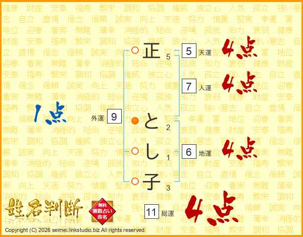 正とし子さんの総運は11画の4点!