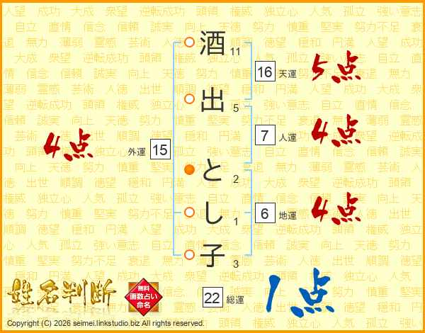 酒出とし子さんの外運は15画の4点!