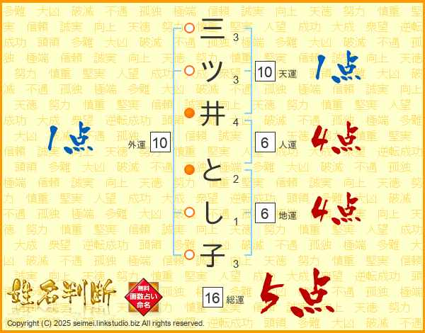 三ツ井とし子さんの総運は16画の5点!