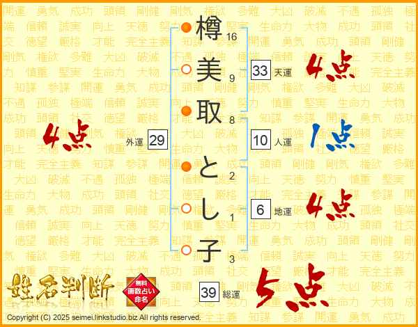 樽美取とし子さんの総運は39画の5点!