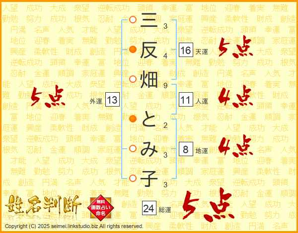 三(3画)反(4画)畑(9画) と(2画)み(3画)子(3画)
