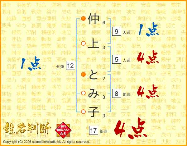 仲上とみ子さんの総運は17画の4点!