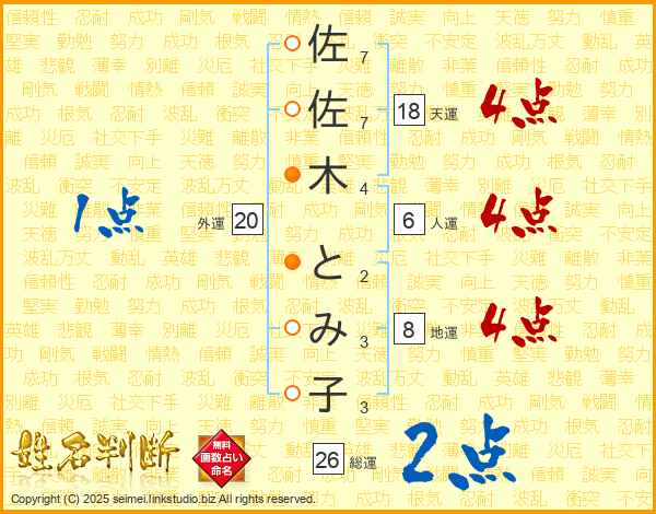 佐(7画)佐(7画)木(4画) と(2画)み(3画)子(3画)