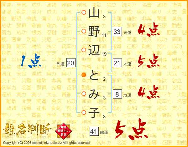 山(3画)野(11画)辺(19画) と(2画)み(3画)子(3画)