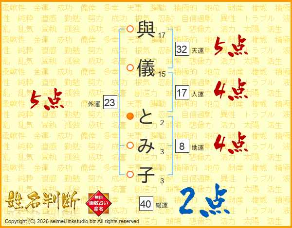 與儀とみ子さんの外運は23画の5点!