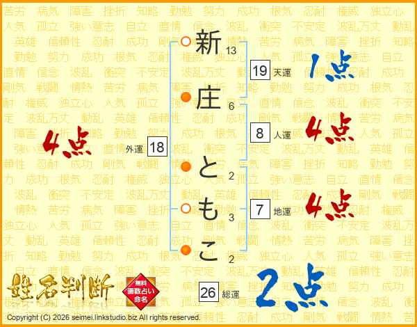 新庄ともこさんの総運は26画の2点!