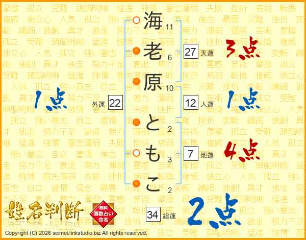 海老原ともこさんの天運は27画の3点!