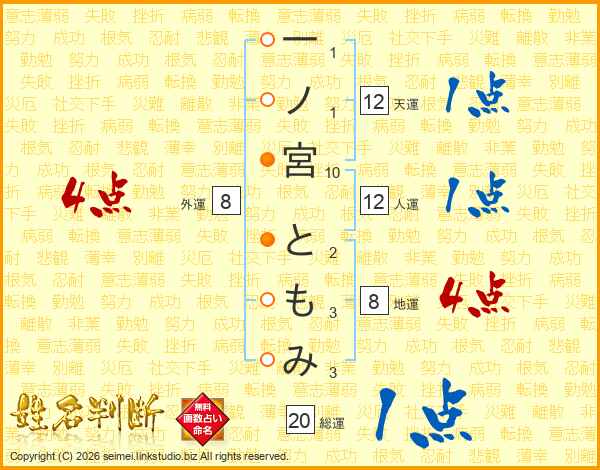 一ノ宮ともみさんの人運は12画の1点!