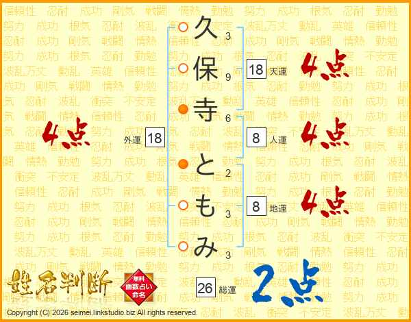 久保寺ともみさんの総運は26画の2点!