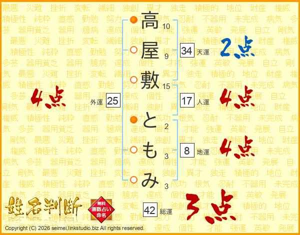 高屋敷ともみさんの総運は42画の3点!