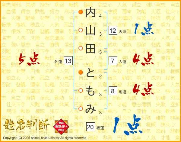 内山田ともみさんの人運は7画の4点!