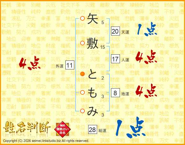 矢敷ともみさんの総運は28画の1点!