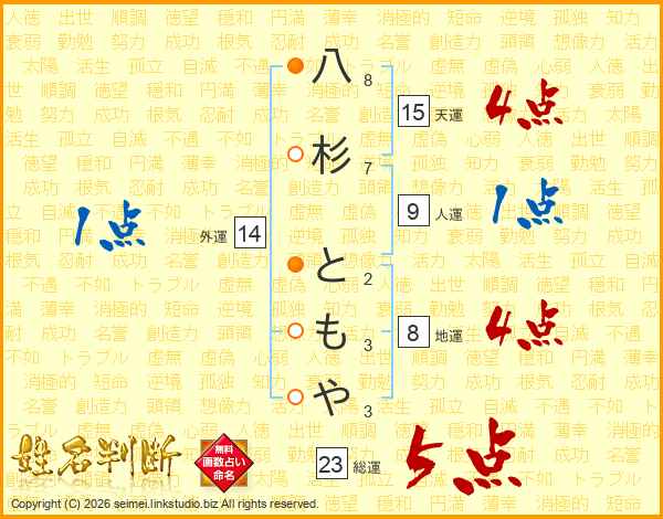 八杉ともやさんの総運は23画の5点!