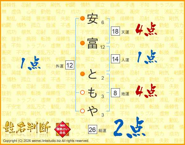 安富ともやさんの人運は14画の1点!