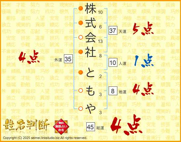 株式会社ともやさんの総運は45画の4点!