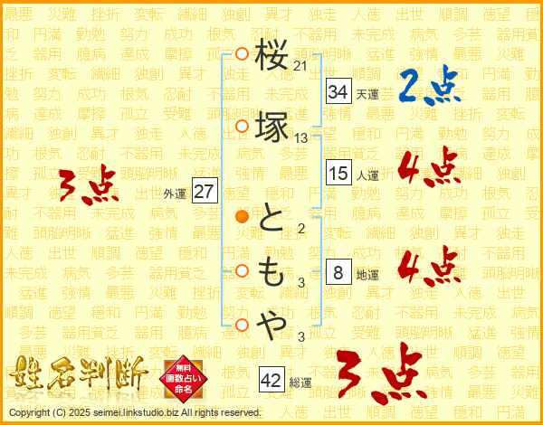 桜(21画)塚(13画) と(2画)も(3画)や(3画)