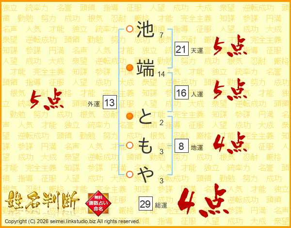 池端ともやさんの総運は29画の4点!