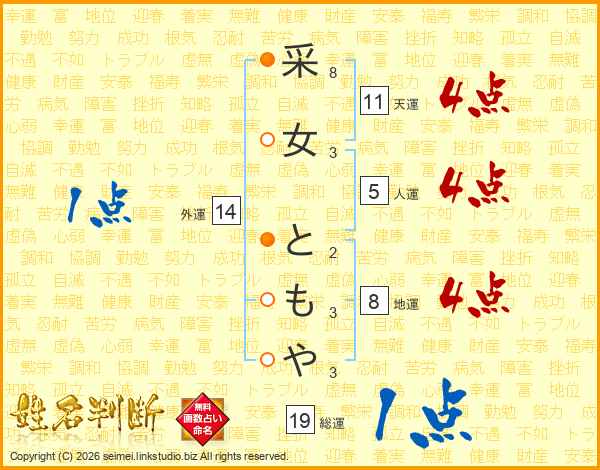 采女ともやさんの天運は11画の4点!