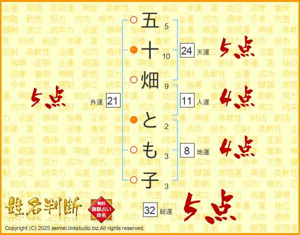 五十畑とも子さんの総運は32画の5点!