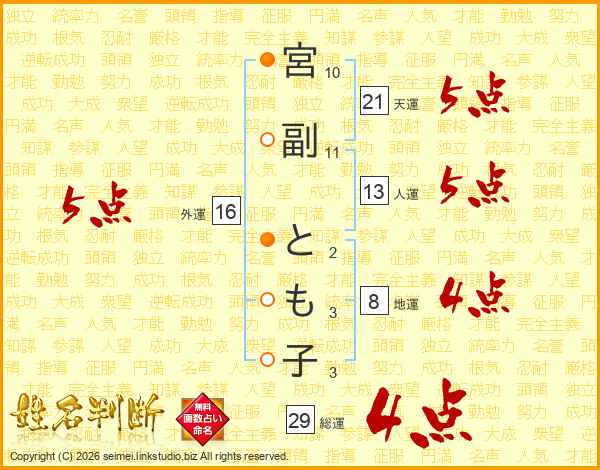 宮(10画)副(11画) と(2画)も(3画)子(3画)