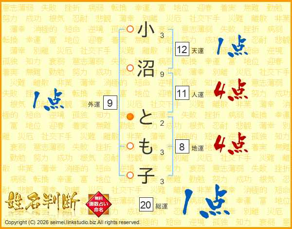 小沼とも子さんの人運は11画の4点!