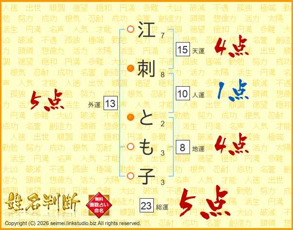 江刺とも子さんの総運は23画の5点!