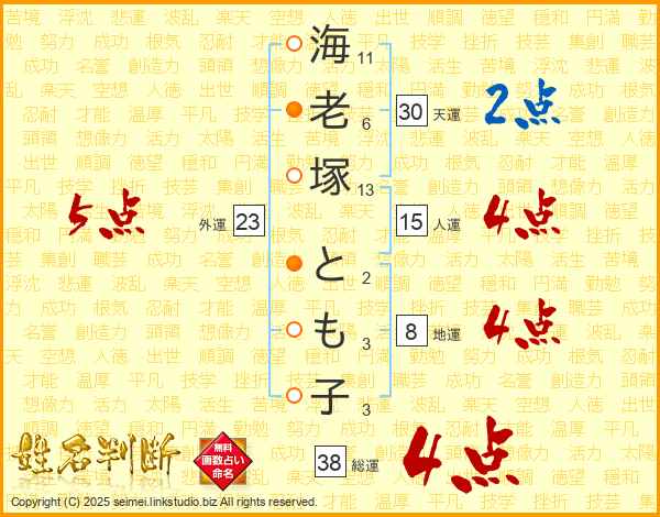 海老塚とも子さんの総運は38画の4点!