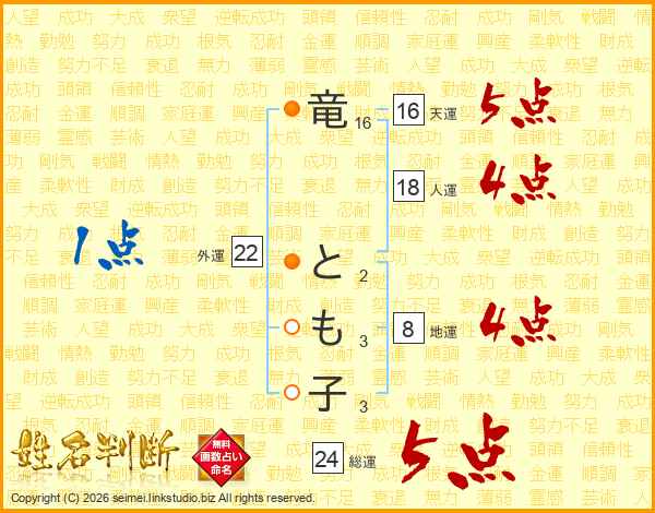 竜とも子さんの総運は24画の5点!