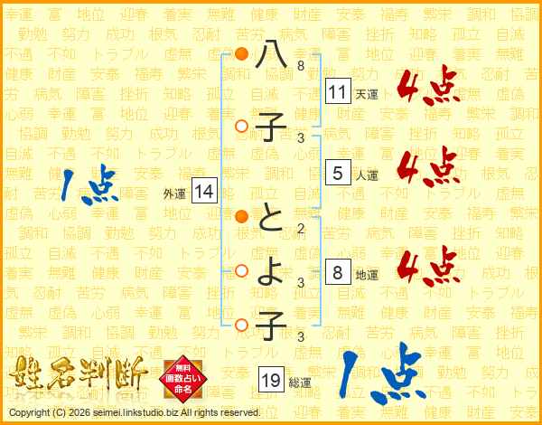 八(8画)子(3画) と(2画)よ(3画)子(3画)