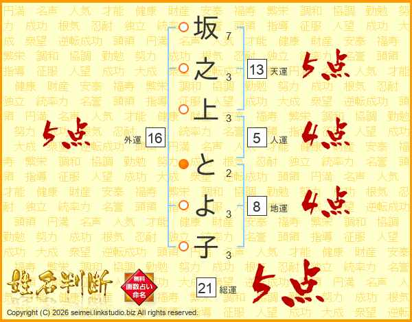 坂之上とよ子さんの天運は13画の5点!