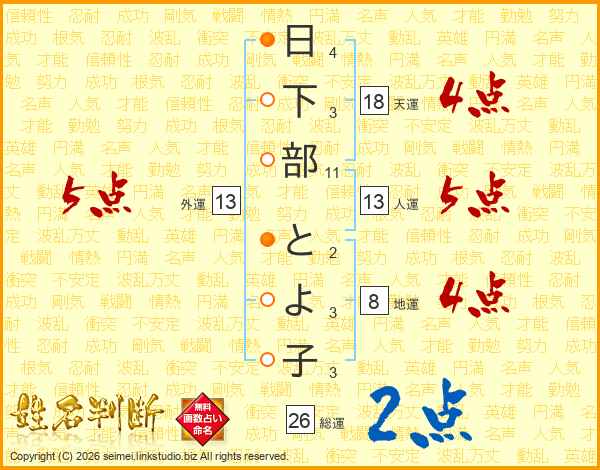日下部とよ子さんの総運は26画の2点!