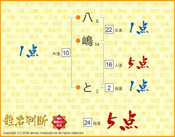 八嶋とさんの総運は24画の5点!