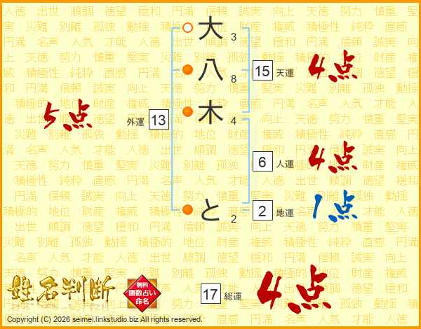 大八木とさんの総運は17画の4点!