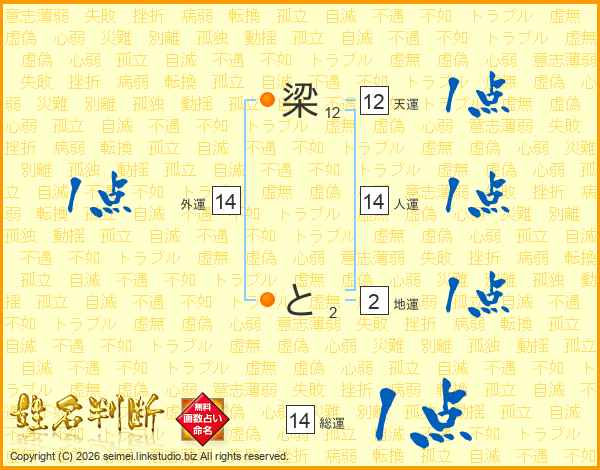 梁とさんの総運は14画の1点!