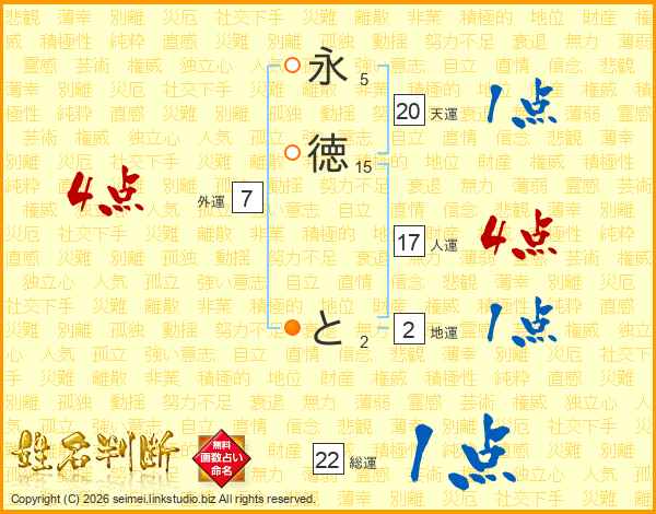 永徳とさんの総運は22画の1点!