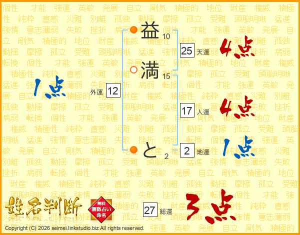 益満とさんの天運は25画の4点!