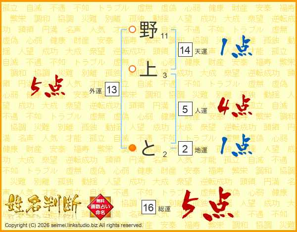 野上とさんの総運は16画の5点!