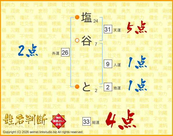 塩谷とさんの総運は33画の4点!