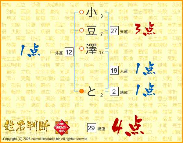 小豆澤とさんの総運は29画の4点!