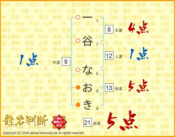 一谷なおきさんの総運は21画の5点!