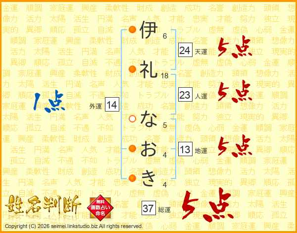 伊礼なおきさんの総運は37画の5点!