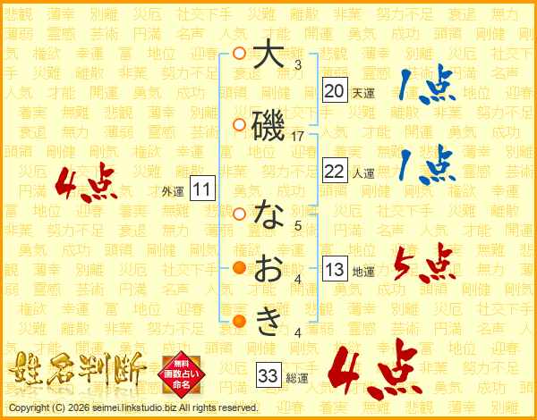 大磯なおきさんの総運は33画の4点!