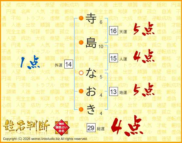 寺島なおきさんの総運は29画の4点!