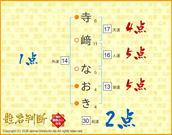 寺﨑なおきさんの総運は30画の2点!