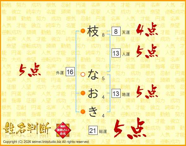 枝なおきさんの総運は21画の5点!