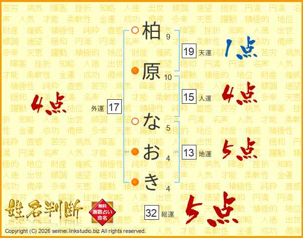 柏原なおきさんの総運は32画の5点!