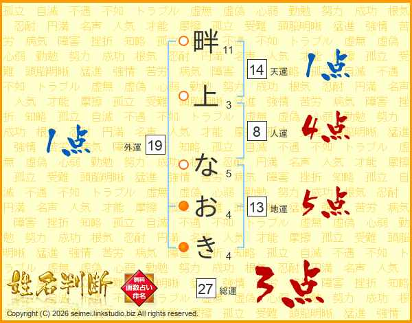 畔上なおきさんの総運は27画の3点!