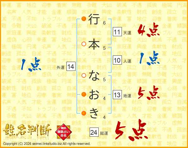 行本なおきさんの総運は24画の5点!