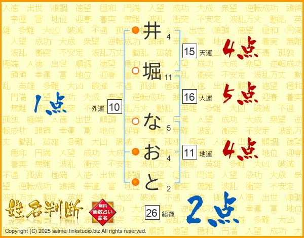 井(4画)堀(11画) な(5画)お(4画)と(2画)