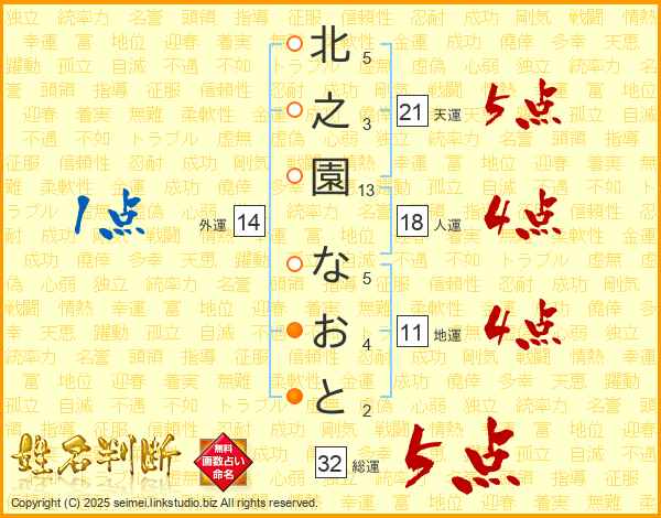 北之園なおとさんの総運は32画の5点!